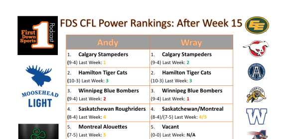 Wray’s Quick Take Hamilton should or could be #1, but Calgary was on a bye and I hate moving teams on a bye. Saskatchewan moves